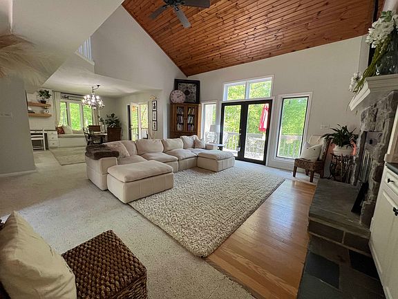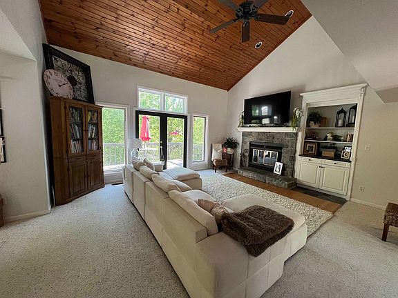This four bedroom home with three full bathrooms offers a master suite w/ whirlpool tub on the main level. Upstairs offers two additional bedrooms, a full bath with whirlpool tub and office space that overlook the cathedral, wood clad ceilings, down to the fireplace in the living room below. Main level kitchen with pantry, granite countertops, newer appliances (Fridge '23/Stove & Dishwasher '22) that are included, water filtration system, & garbage disposal & access to the attached garage. Off the dining room is access to the screened in porch & open deck. Lower level has a kitchenette w/ wet bar, cabinets, & a mini fridge. Basement is a walkout to nice, mostly wooded lot w/ a shed. There is an additional fourth bedroom and a fourth bath in the lower level. Nice size back storage area with a mop sink. Laundry room with a mop sink as well. Very nice location in The Galena Territory Resort off Blackhawk Trace, not far from the main entrance or the Owners Club. The Galena Territory resort, offers an indoor pool, outdoor pool, horseback riding trails throughout for biking and hiking too, Lake Galena for fishing, a Spa, restaurants, convenience store, tennis courts, 4 golf courses, and more. Additional plusses in the home: Whole house attic fan, plumbed for central vac, Two new windows (5/23) in the double doors to deck, most interior painted 22/23. Seller offering a $10k flooring allowance at closing & a 1 year Home warranty to Buyer.