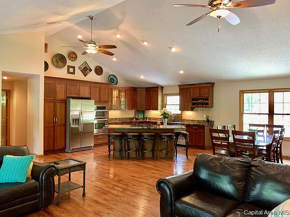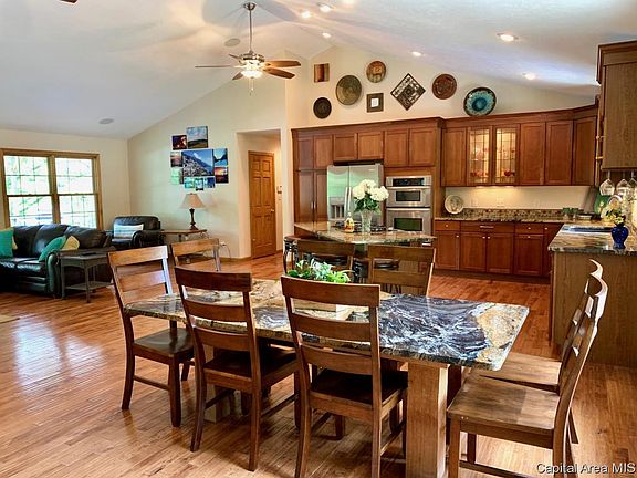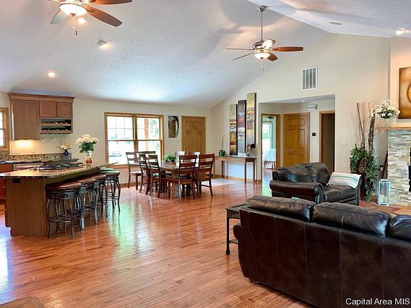 Perfect weekend LAKE retreat for your family or enjoy year round vacation style living with the LAKE & GOLF COURSE just STEPS AWAY.This LAKE home is just 7 years new, features vaulted ceiling creating an spacious feel in this open floor plan. Kitchen area features a large granite top island, beautiful cabinetry,Jennair gas cooktop,stainless appliances, hickory hardwood floors throughout the living & kitchen areas. You will love the LAKE FEELING. The covered deck is perfect for relaxing, dining & entertaining. Great water/golf course views. Enjoy boating, kayaking, etc in a deep calm bay.Beautfully landscaped for easy care.3BR/2BA, attached 2 car garage. Pull-down steps in attic for additional storage space. RARE newer home on LAKE SPRINGFIELD in ROCHESTER SCHOOL DISTRICT