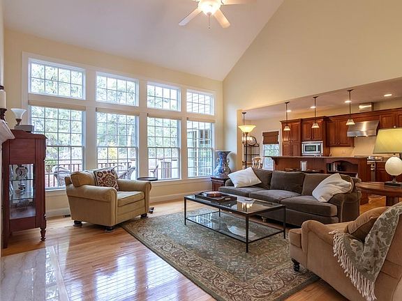 Lovely "Blackthorne" style Whitman home located close to The Stonebridge Club resident amenity center in The Pinehills. Open concept floor plan featuring cathedral ceiling living room with marble surround gas fireplace, dining room with tray ceiling and crown molding, kitchen with upgraded stainless steel appliances, granite counter tops and cherry cabinets which lead out to a mahogany deck and level backyard for entertaining. Custom window shades throughout the entire house. Master Bedroom suite with large walk in closet, tray ceiling and large bath with two sinks, jetted tub and tiled shower. Den, bathroom and third bedroom on second floor were added by homeowner and complete this beautiful home.