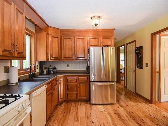 This exceptional home is nestled in one of West Holyoke's most desirable neighborhoods. 3+ beds, 3 full bath Cape w/ potential in-law or teen suite on lower level. It has been lovingly maintained & updated. It boasts a newer roof, heating system & gleaming Hickory floors throughout much of the main floor. The 1st floor has a bright & sunny great room w/ a working brick fireplace, sliders invite you outside to a perfect sized deck which overlooks a sizable backyard. Large kitchen w/ Cherry cabinets & breakfast bar, a lovely dining room, living room, full bath & good size bedroom. The 2nd floor contains a full bath, & 2 substantial size bedrooms w/sky lights, & reading nooks. On the lower level you will find a 3/4 bath, a laundry room, another good size bedroom, & a living room leading outside to a concrete patio. The unfinished part of the basement has tons of storage space. This home also has a 2 car attached garage, central air, & a sprinkler system. Come see it today!