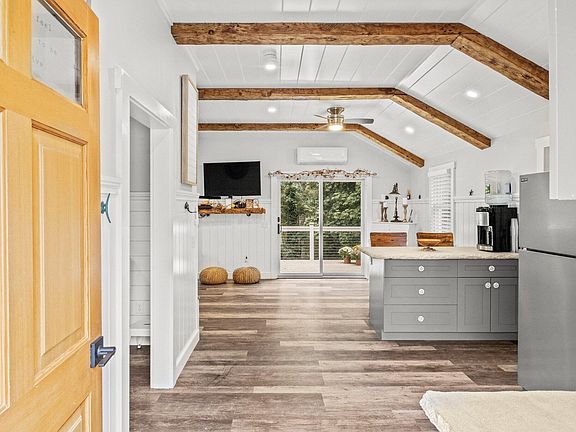Step inside and be greeted by the impeccable interior of this home, which has been rebuilt from the studs up. With everything brand new since 2023, you can enjoy the peace of mind that comes with a new home. Featuring 1 bdrm and 1 bath, the open-concept kitchen and living room is perfect for comfortable living and entertaining. Don't be fooled by the square footage, the cathedral ceiling adds an airy and spacious feel, while the abundance of natural light creates a warm and inviting atmosphere. Every inch of this home has been maximized for comfortable living. The exterior offers a deck and patio that provide perfect spaces for outdoor relaxation and enjoyment, and a shed for additional storage. The natural, private backyard is set on a large lot allowing for ample space to roam and explore. For nature enthusiasts, there's even frontage on Herring River, providing a tranquil backdrop to everyday life. Located close to Bells Neck Conservation and Cape Cod Rail Trail, offering easy access to beautiful walking and biking trails, wildlife observation, and other outdoor activities. Immerse yourself in the serene surroundings and embrace the peacefulness this home has to offer.