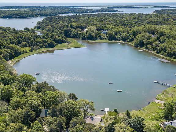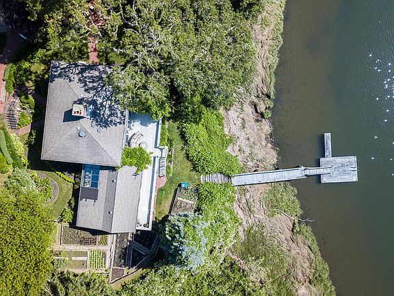 Enjoy Tuscan-style living at this magical waterfront home! Dine under a leafy pergola, bake pizza in the outdoor brick oven, dig clams from your yard. Park like grounds offer great privacy yet quick access to town & beaches. Jewel-like water views from every room, private dock & flowing floor plan make this totally updated home unforgettable.Enjoy nature's serene palette from the light-filled chef's kitchen with fireplace. A second fireplace complements the large living/dining room. Spacious library is ideal for family gatherings. Kids & teens have their own game room in the walkout lower level. Upstairs is a luxurious master suite and two other bedrooms, all with California Closets. The 2-car heated garage has a mini-apartment above, perfect for guests.