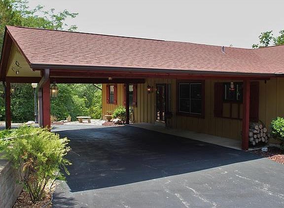 Beautiful, custom designed ranch situated on over 3 acres in O'fallon! Nestled at the end of a cul-de-sac & surrounded by trees. Circle driveway w/ a shaded overhang off the front of the home. Bright & open floor plan featuring a gorgeous stone wall w/ a wood burning stove. Custom wood beams on the vaulted ceiling in the family rm and a feature wall with built in shelving. Perfect for entertaining with a large bar that is accessible from the family rm & kitchen. Also, sliding glass doors open up to the spacious covered deck w/ a ceiling fan. Charming breakfast rm & kitchen w/ custom cabinetry, unique light fixtures, built-in microwave, stove/oven and dishwasher. Two guest bedrms, a full hall bath & a master suite. The master boasts 3 large closets, built in shelving & an en-suite bathrm w/ a shower & linen closet. The walk-out LL offers plenty of storage space, a laundry rm & cedar closet. This one-a-kind house is in a serene setting, yet minutes from highway access.