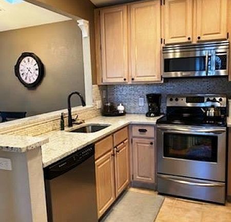 Stunning upgraded "light and bright" 2nd floor unit with skylights, an enhanced fireplace and direct garage entry. Bamboo flooring,granite countertops, stainless steel appliances,newer windows plus newer slider with internal blinds, are some of the highlights of this home.Warm and inviting. The balcony off the Living room lets in streaming sunlight and is great to step outside and enjoy the fresh air and check out views. Amenities are only blocks away which include a good sized pool, gym, club house and tot lot