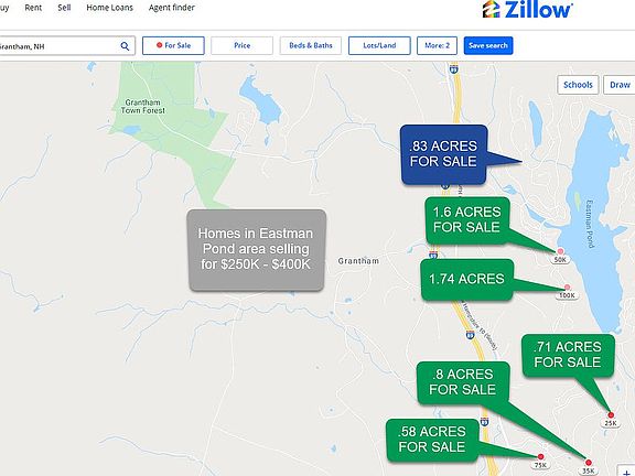 This .83 acre building lot is on the Grantham side of the Eastman Pond area, so many amenities in this 4 season community! Golf course, exercise center, tennis courts, beaches, hiking trails, skiing, and more! If you love nature, you would love living on this 0.83-acre property in Grantham, New Hampshire. This property is nestled on High Pond Rd close to Eastman Pond. This lot is nestled in a prime location surrounded by wildlife refuges and state forests. Perfect for anyone who wants to escape the city and live in peace, this property is indeed a gem. Grantham also has a number of great library offerings close by, wherever your interests lie you'll find a variety of genres that include Chick Lit, History, and Suspense. Spend some time relaxing at Susan Colgate Cleveland Library and Lear. This lot is perfect for you and your family, come enjoy it now! Contact us now! Key facts: Part of a lake community Community has a golf course, tennis courts, hiking trails, skiing, beach access and more Centrally located to lots of cities and attractions City water and electric HOA and road maintenance is $270 a month Septic needed, not perc tested.