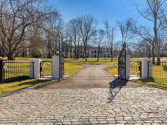 This exquisite property features an 11,000+ square foot opulent home situated at the end of a private road on 5 acres of beautifully manicured grounds in the heart of Matinecock. Nestled in Long Island's affluent Gold Coast, Matinecock is set in between the quaint towns of Mill Neck, Locust Valley, and Upper Brookville and boasts spectacular homes on every corner. The highly coveted area has been home to names like Roosevelt and Vanderbilt, and remains a top choice for settling down, given the variety of beaches, golf courses, marinas, fine dining establishments, shopping centers, and excellent public and private school systems that it offers. Located just a 30-mile commute from iconic Manhattan and a close proximity to the Long Island Railroad, Matinecock is a charming residential area of hills, ponds, and picturesque estates. Completely rebuilt in 2016, this 7-bedroom, 8 bath masterpiece was designed with the utmost elegance, completed with lavish interior detailing from marble floorings with radiant heat throughout to walls with imported wallpaper and gold leaf foiling. Entering the magnificently detailed wrought iron gates and driving up the long winding drive marked by flowering trees, guests are blown away by the sheer stature and presence of this incredible estate. Double doors open to a grand foyer marked by 30-foot ceilings and an all crystal motorized chandelier. The main floor is an exceptional living space equipped with an enormous en suite guest bedroom, a formal dining room, a formal living room, a tea room, a cozy office, a family room, and a large eat-in-kitchen with a wet bar and state-of-the-art appliances. The kitchen is a chef's delight, designed for the serious cook and entertainer, equipped with wood cabinetry, two large center islands, and restaurant grade appliances - Viking stove, three conventional ovens, two SubZero refrigerators, a Gaggenau built-in coffee maker, a Perlick wine cooler, and far more - to create those exotic, gourmet meals. The formal dining room, which features a stunning hand-carved white marble fireplace and three sets of French doors overlooking the property, can comfortably seat up to 24 guests. A dramatic sweeping staircase with a beautiful marble and a wrought-iron banister invites guests up to the second floor of the home. Each bedroom is complete with an en suite bathroom, large walk-in closet, and private terrace. Guests can peacefully enjoy their morning coffee while basking in the property's tranquil aura. The master suite is truly exceptional and inviting, yet private. Within the spacious main room, one can find a dual gas fireplace, a Himalayan salt wall, a kitchenette, and a secluded lounging area. A massive walk-in closet off the bedroom boasts floor to ceiling storage and drawers so you will never run out of closet space. Another notable feature of the master suite is the bathrooms, equipped with two steam showers, a sauna, a soaking tub, striking marble tiling, and the finest fixtures. The five-acre estate is cloistered by formal lawn, ornamental and specimen trees, and backs the 400-acre Planting Fields Arboretum to guarantee residents the utmost level of privacy. An expansive patio leads out to the in-ground gunite pool, perfect for summertime entertaining. This remarkable estate represents the finest in luxury living and an unparalleled level of prestige.