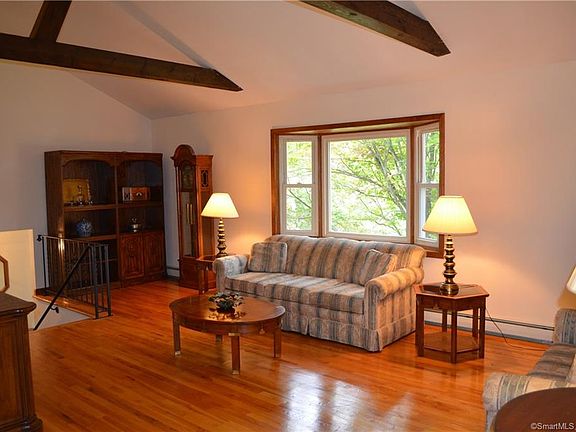 Extremely spacious, highly versatile & unique split level Dutch Colonial styled home. 2,130+ square feet offers larger & more open living space. Formal LR, DR and large eat-in kitchen w/high vaulted ceilings and beams. Over sized kitchen w/lots of cabinets, newer tile floor. Beautiful hardwood floors, tiled baths. Newly painted throughout. Large BRs w/2 sets of double closets. MBR w/full bath. Main level foyer opens to FR & den. FR w/corner brick FPL, Franklin wood stove and sliders to side patio, is open to a bright ML den w/bay window. The FR also has a large half bath w/room for an added tub or shower. Ideal for possible expansion, in-law set up. Newer windows & LL sliders. This extraordinarily designed home also includes a heated main level workshop/basement area between the main level living space and the attached garages. Finish this room for additional living or recreation space or set up a work shop, craft room. Set back on a lovely lot in a small cul e sac neighborhood. Desirable & scenic Northville location, close to schools, shops & restaurants. Convenient to Village center,Lake Waramaug; easy commuting South and North.
