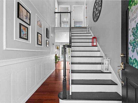 Welcome to your dream home in the coveted Fieldstone neighborhood of Portsmouth, RI. Situated on a charming corner lot, this lovely Cape offers the perfect blend of classic design and modern amenities. Step on to the inviting front porch, the perfect place to watch the sunrise with your morning coffee. Just inside, you are greeted by a bright and airy entry hall with soaring ceilings. The main living space is ideal for entertaining. Flow effortlessly from the living room, with its wood-burning fireplace, into your warm and modern kitchen. There, you will find a large center island and plenty of counter and cabinet space. Meals are easily enjoyed in the dining room, just steps away. Rounding out this level is a convenient office (or second living room) and a half bath with laundry. The sunny and spacious second floor is home to three ample bedrooms (that could easily be converted to four), two full bathrooms (including an en suite), and a walk-in closet. Enjoy a game of pool or movie night in the massive finished basement with plenty of storage. Outside, you'll love the expansive deck with a screened-in area. Enjoy the fresh air while being protected from the elements! The outdoor experience is enhanced by a fenced-in backyard and a well-maintained in-ground, freshwater pool with cabana. Move in ready and priced to sell!