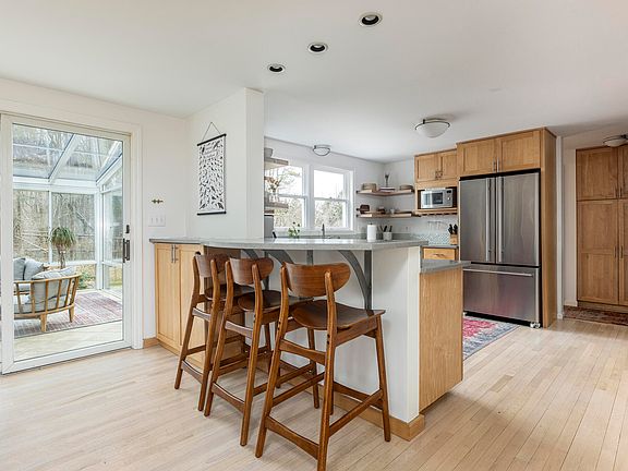Set in a charming Cape Elizabeth neighborhood, this delightful 3 bedroom, 2.5 bathroom home embodies the perfect blend of updated comfort and convenience. With quick access to the town center, local schools, state parks, and beaches, you'll experience the best of Maine living right at your doorstep. Inside you will discover a thoughtfully designed main level with a very desirable layout. The kitchen features beautiful backyard views, ample cabinetry, open shelving, quartz countertops, and stainless steel appliances. You can entertain guests seamlessly as the kitchen flows into the dining and living area, complete with a cozy wood stove. The family room with cathedral ceilings serves as the perfect gathering spot, while you can take a quiet moment to unwind in the three season glass sunroom with panoramic views of the private, beautifully landscaped yard. Upstairs you will find new hardwood flooring, complimenting the lovely refinished floors on first level. The primary suite offers a spacious walk-in closet, expansive windows allowing for plenty of natural light and a private bath with double vanities. Two additional bedrooms and another full bath complete the upstairs. Located on a peaceful dead-end road, this home invites you to experience the epitome of coastal living in Cape Elizabeth!