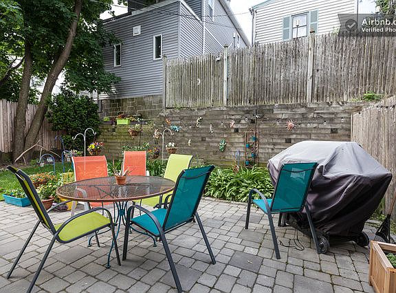 Single family home with largest private completely fenced in back yard and stone patio you'll find in the neighborhood. 3 floors include first floor completely open living/dining/kitchen, 2nd floor with 2 large bedrooms, large bathroom with jacuzzi tub and a 3rd small room for a nursery or office, 3rd floor completely remodeled into a master bedroom with full luxury bathroom. Everthing is updated, including all energy efficient tankless water heater, central AC for 1st and 2nd floors and ductless ac and heat on 3rd floor. Dead end street makes parking quite easy and available.