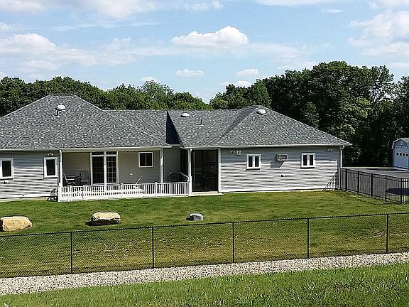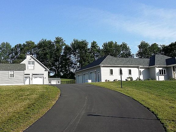 Custom Ranch built in 2017 located on 5+ Acres in rural area, yet only 1/2 mile from I-84. Pond view, open floor plan with 9' ceilings and crown molding throughout most of house. Island Kitchen with Quartz counters and 50 sf walk-in pantry with cabinets. Appliances are Frigidaire Gallery. Two full and a 1/2 bath with quartz counter tops and beautiful cabinetry on main level. Front and rear covered Porches, Whole House Generator, Propane Gas and many features throughout the home. Forced air HVAC and whole house exhaust fans. Walk-out basement Rec Room with 1/2 bath. Fenced back yard with Garden Shed. Three car attached garage, along with two car detached garage/workshop that includes car lift - both are heated and air conditioned. Additional single car storage garage also. Tons of storage space. Mount Hope river runs through the property and conveniences are all within 15-30 minutes away. Maple syrup tapped off property trees, free syrup from producer! Pet kennel off laundry area. Alarm & Surveillance systems. Airports; Logan - 75 minutes, Bradley - 45 minutes, TF Green - 60 minutes.