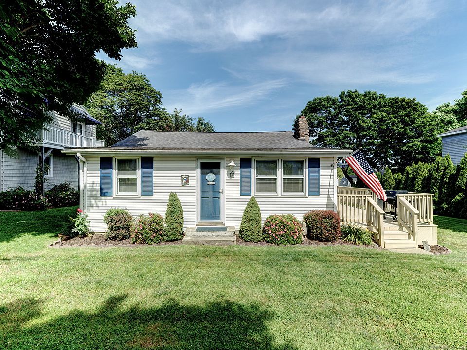 Niantic! Charming Year-Round beach home in highly sought-after Giants Neck Beach. Welcome to paradise in this special enclave. Meticulously maintained residence, cherished by the same owner for 33 years, offering the perfect retreat for year-round living. Nestled on a level .18-acre lot & located in a private, serene setting away from the bustle of beachgoers yet minutes by foot to the water. Perched on one of the highest points in the community, the gorgeous lot reaps the benefits of cool sea breezes and distant water views. Comfortable living featuring an open floor plan making entertaining easy. Iconic brick interior/stone exterior fireplace with gas insert is perfect to take the chill off during the winter/early spring. Primary bedroom and guest bedroom plus a full bath on one level. The kitchen features original cabinetry in great condition with a breakfast bar for a quick bite. Enjoy the expansive deck with southern facing exposure plus an awning for those summer days when the sun is at the strongest. Oversized garage perfect for kayaks, beach chairs and lawn equipment. Outdoor shower is ideal after a day at the beach. Beach association includes 2 beaches, a clubhouse, pickleball/tennis courts and dock slips for rent when available. Whether you're seeking a peaceful retreat or an active beach lifestyle, this home offers the best of both worlds. 2 hours to NY or Boston w/an Amtrak station 20 minutes away. Rarely do you have a chance to live in such a special place