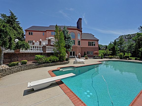 Sophisticated luxury living nestled in one of Holmdel's most desirable neighborhoods. Positioned on 1.4 private acres this brick masterpiece is adorned with a brand NEW roof & over 6,000 sq. ft of extraordinary quality & design. Stunning two-story foyer, grand staircase, sun- drenched palladian windows, ornate moldings, wide plank hardwood floors & palatial ceilings will take your breath away upon entering. Boasting a superior Living Room w/French Doors leading to an intimate Library featuring tray ceilings, hand painted mural & marble fireplace. Gourmet Kitchen is complete with premiere appliances, & leads to Formal Dining Room & magnificent two- story Family Rm with stone fireplace & unsurpassed views of the backyard oasis. The main floor Master Bedroom Suite offers high ceilings, exceptional windows & beautiful marble bath area equipped with a cedar sauna. Additional 5 bedrooms, one with a loft, and three full bathrooms complete the upper level. The true show stopper is the 2,500 sq. ft of outdoor terraces ideal for entertaining overlooking the beautifully manicured grounds and resort- style pool. An exceptional opportunity in a prime location close to all NYC transportation, local shopping & Jersey Shore beaches. 2020-12-11