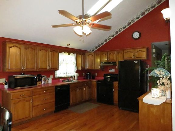 - Kit Dscrp: Ceiling Fan(s), Flooring - Hardwood, Deck - Exterior, Skylight, Ceiling - Cathedral, Open Floor Plan, Country Kitchen