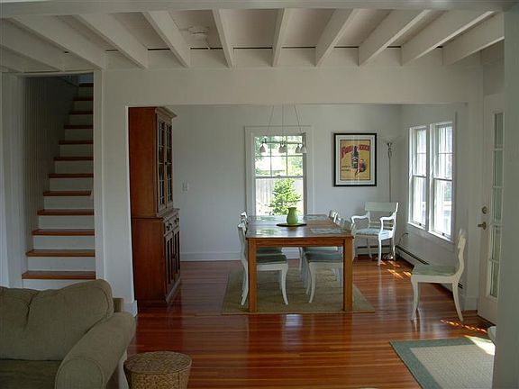 Ocean views of Cape Cod Bay can be seen from every room in this newly renovated, fresh, clean rambling beach house which still retains its original charm. The spacious new kitchen with stainless steel appliances, granite counter tops and glass tile backsplash, opens on to a large, professionally landscaped yard perfect for picnics and BBQs. There is a separate dining room which opens into the living room with cozy corner fireplace and plenty of windows, high beamed ceilings and lovely light to enhance the space. The east facing deck commands great views of the water and is just steps to a beautiful swimming beach.House is on a quiet road, just across the street from the beach. This house has 4 bedrooms and 3 full tile baths, sold completely furnished + appliances (few exceptions),fir floors, outdoor shower and in-ground irrigation system.