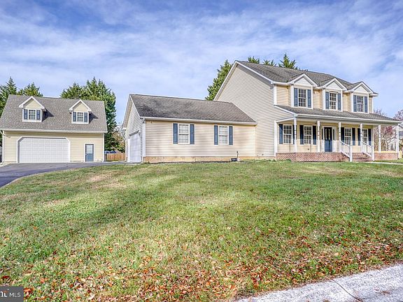 SPACIOUS is the best word to describe this custom Colonial nestled on just under 1/2 an acre in the stately community Old Mill Acres. The first floor welcomes you with a mix of traditional hardwood flooring and carpet. First level bedroom and full bath. Traditional living and dining room allow for optimal entertaining. The seller added a beautiful sunroom that offers tons of sunlight from the many windows and the room is complete with built-in shelving and a cozy gas fireplace. The open concept kitchen offers additional living space with a second gas fireplace and even a breakfast nook. Upstairs you will find 2 additional secondary bedrooms and the Primary suite that is complete with an HGTV-worthy California Closet. The oversized detached 2-car garage with second floor studio apartment was constructed in 2018. The garage itself is fully insulated and has a dedicated split unit to offer comfort to work on projects all year long. The studio apartment is a great rental opportunity and has endless possibilities for personal use. Rest assured that even if the property looses electricity, you will be able to continue to power the property with the Generac generator. This home has 3 hvac zones so you will be comfortable all year long! The Seller has opted for a pre-inspection on the property and has addressed necessary items in order to sell "as-is". All of the home and carpets have been professionally cleaned, making this home move in ready!