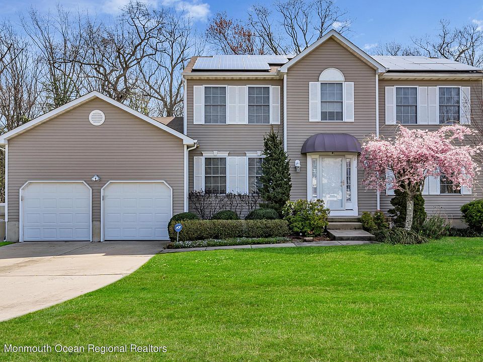 Welcome to this amazing Colonial at the end of a cul de sac backing to the woods for privacy. 3 large bedrooms, 2 full baths upstairs and half bath on the 1st floor with laundry area outside the 2 garage entrance. Concrete driveway, poured concrete basement and lush gardens with a rear deck to enjoy those quiet nights. Do not miss this opportunity to make this your new home. Vinyl fencing surrounding the property. Forced hot air, central a/c, solar panels to keep the utility bill low. Ready to move? Don't miss this opportunity!