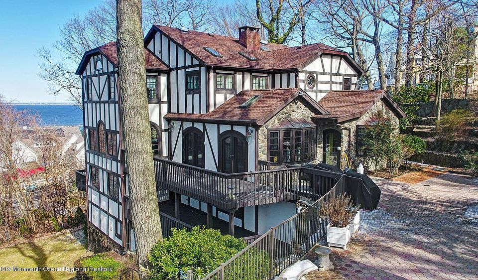 Once Upon A Time Way Up High in the Hills of Atlantic Highlands, There Stood a Grand Mountain Tudor Home Overlooking Sandy Hook Bay. You Will Be Awed by the Custom Arched Windows & Gorgeous French Doors Framing the Water Views & NYC Skyline. You'll Find Vaulted Ceilings, Beautiful Hardwood Floors, a Custom Marble Fireplace & a Stunning Curvy Spiral Staircase. The Ballroom-Sized Living Room is the Perfect Space for Large Gatherings. The Master Bedroom, with it's Soothing Water view, Features Soaring Ceilings, Closets Galore (including a Walk-In) & Marble Ensuite Bathroom Fit for a King or Queen. Lower Level Recreation Room with Bar and Full Bath, Plus 2 Bedrooms.