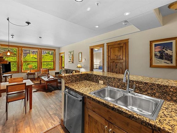 Black Bear Lodge stands out as one of Mt. Crested Butte’s premier condo buildings, offering coveted amenities like heated underground parking, private ski lockers, and a welcoming lobby lounge. Residence 106 is a sought-after first-floor corner unit, featuring two spacious bedrooms, two full bathrooms, and just over 1,000 square feet of comfortable mountain living. The open-concept layout is ideal for relaxing and entertaining. The well-appointed kitchen includes ample cabinetry, generous counter space, and a peninsula with bar seating, flowing effortlessly into the cozy dining nook and living area. Centered around a gas fireplace, the living room opens to a covered deck that is perfect for morning coffee or après-ski cocktails. The generous primary suite enjoys direct access to the deck and features an en-suite bathroom with a jetted soaking tub, double vanity, separate shower, and large closet. The second bedroom is equally spacious, with a large closet and easy access to the second full bath across the hall. Additional highlights include an in-unit washer and dryer, a large entryway/mudroom with multiple storage closets for all your mountain gear, and access to the outdoor hot tub which is an ideal way to unwind after skiing or hiking. The lodge's expansive lobby offers an entertainment area and communal hangout space, while the heated garage ensures year-round convenience in snowy conditions. This condo is being sold fully furnished and turn-key, with a strong short-term rental history. Whether you're seeking a profitable investment, a weekend getaway, or a cozy full-time mountain retreat, Residence 106 is the perfect opportunity at the base of Crested Butte Mountain Resort.