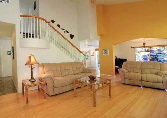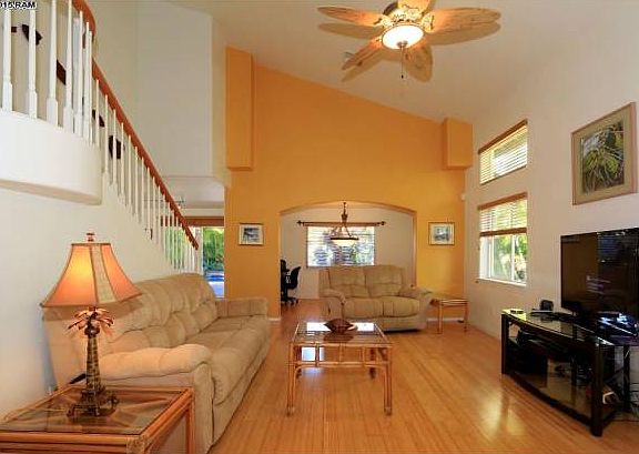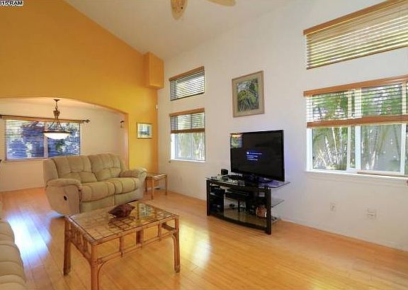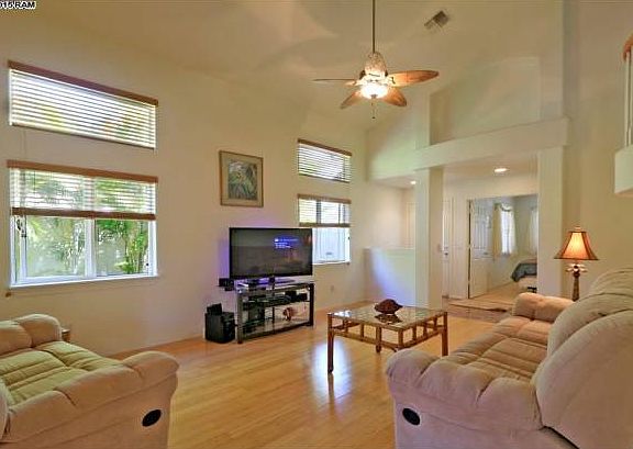 Luxurious 5 bedroom, 3 bath home in the prestigious, gated community of The Island at Maui Lani. Gorgeous West Maui Mountain and Haleakala views. Relax or entertain on your covered patio while enjoying your beautiful 15' x 30' swimming pool. Special features include stucco exterior, tiled roof, fully fenced back yard, automatic sprinkler system, vaulted ceilings, bamboo and tile floors, custom light fixtures, central air conditioning, and solar water heater. Built in 2002, this was a Parade of Homes winning floor plan, the Symphony D. The Island at Maui Lani is a highly sought-after neighborhood located close to golf, shopping, medical facilities and government offices.