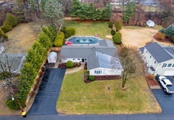 Your North Framingham entertainment oasis awaits! Spectacularly remodeled open concept ranch offers single level living at it's finest! 4 Bedrooms, 2.5 Baths situated on almost a 1/2 acre w/expansive yard & gunite in-ground pool. A warm foyer welcomes you into the cabinet packed kitchen w/breakfast island, upgraded SS appliances & pantry closets. The gorgeous stone fireplace is the focal point of the living room w/bay window overlooking the pool & patio. The dining room & family room flow together w/beautiful built-in's & double French doors to the patio. Delightful details include gorgeous LVT flooring, recessed lighting, custom blinds & neutral décor. The primary suite is a dream sanctuary w/double custom closets & primary bath w/double vanity, tiled shower & jacuzzi tub. Experience 3 additional bedrooms (1 with a private 1/2 bath) & another full bath! Central Air! Shed, lawn irrigation, new cedar fencing. Close to major routes & shopping. This home has WOW factor! Come see!