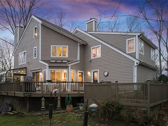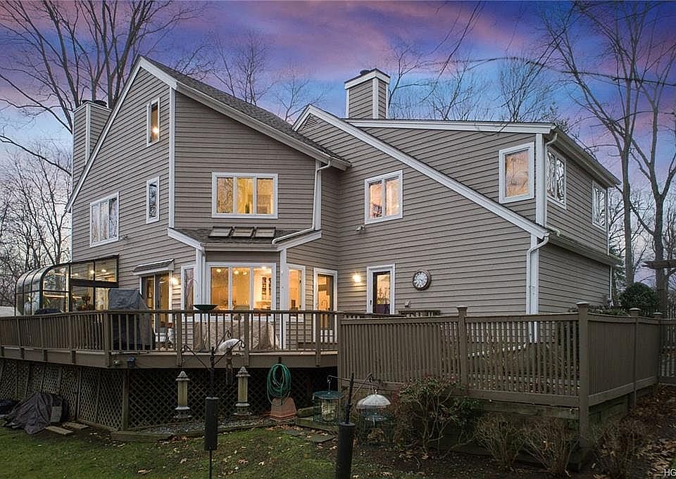 Nestled at the end of a cul-de-sac in the award winning Chappaqua School district, this beautiful updated home offers privacy yet is close to it all. The home is immediately welcoming with vaulted ceilings, over-sized windows and sky lights throughout for max sunlight. A large and modern eat-in-kitchen complete with granite countertops and stainless steel appliances conveniently adjoins a family room with fireplace. The large dining room makes this a great space for entertaining. Glass sliders lead to a greenhouse and deck with views of the beautiful natural surroundings. Upstairs features a master suite with a large bath, loft area and fireplace. Two more bedrooms, plus a bonus room and full bath complete this level. All bathrooms were renovated in 2016. Outside you will find extensive and meticulously maintained decking, with mature trees surrounding you to create privacy and seclusion.