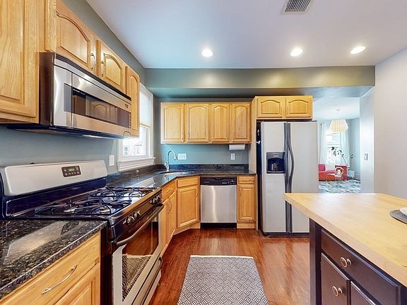This gem in East Somerville is only 2 Blocks to Gilman Square green line and walking distance to Union Square! Includes a private back porch and TWO garage spaces. This first-floor unit boasts large, bright windows that stream through living room and bedroom windows. Eat-in kitchen features granite counters, stainless-steel appliances and gas cooking. Laundry and full bathroom complete the first floor. Finished lower level includes second bedroom, full bathroom, walk-in closet and endless living options, including office, home gym or yoga room. Unit also provides central air conditioning, private storage and lovingly maintained shared garden area. Roof is under 2 years old. This property is conveniently located near Foss Park where residents enjoy a public pool, restaurants, grocery stores (5 minute drive to Stop & Shop and 10 minute drive to Wegmans) and Rte 93. This is a 100% owner occupied, pet-friendly building!