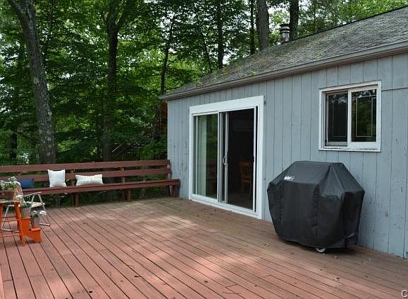 100+ FEET OF DIRECT WATERFRONT On a Pensulia with privacy, cottage home has an open floor plan, great room with fireplace, sliders to expansive deck with lake views, private setting, tiered waterfront with mature trees sweeping views, updated septic in 2006! Ideal commute minutes to New York line and train station. Expansion potential!