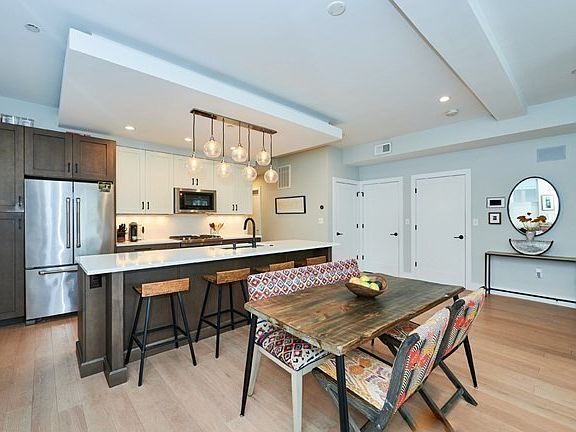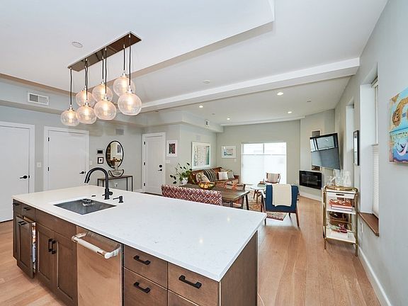 Custom crafted two bedroom, two bath with deeded parking located in the heart of Jeffries Point! Minutes to the water! Built in 2017 from the ground up by a noted premier developer. This home is truly built for full scale, memorable entertaining and encompasses nearly 1200 sq/ft all on one level! Flawless floor plan! Designer's open concept kitchen & living w/ custom built-ins and a gas fireplace! Private deck off LR! Chef's kitchen features all Jenn-Air stainless steel appliances, quartz countertops, oversized island + separate pantry. The spacious primary bedroom showcases a large walk in closet plus a distinctive tile ensuite bathroom with floating double vanity! Generous second bedroom with superior closet space! Impeccably preserved engineered flooring, in-unit laundry, central heat/ac and recessed lighting throughout. Pet friendly association and perfectly situated next to all that Jeffries Point has to offer: Harbor Walk, Porzio Park, Downeast Cider, and the Maverick T.