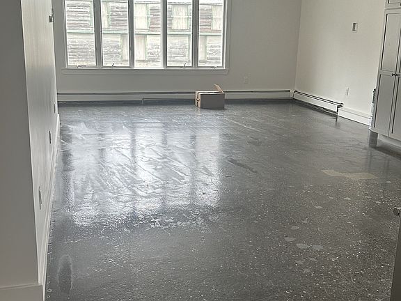This spacious 1000 sq. ft. 2 bedroom apartment includes a large third room that would make a great office with a second entry. The space has a welcoming entry area, high ceiling open concept living room with a sunny spot by the oversized front windows. It has a large kitchen with stainless steel appliances and in apartment washer/dryer. Bathroom includes a tub shower. There is a mini split for air conditioning and supplemental heat, but rent includes baseboard heat. It was fully updated a couple of years ago with an all new kitchen, bathroom, fresh paint, polyurethaned doors, polished concrete floors creating a modern industrial finished look. The kitchen has maple cabinets and walnut butcher block counter tops.