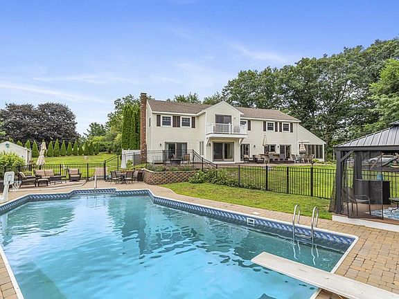 **House is at end of common driveway. For GPS use 155 Main St (rt 30).** Welcome to your private oasis! This beautiful 5 bed/2.5 bath home is nestled on 3.26 acres. Enter into the sun-drenched family room with a back wall of sliding glass doors that lead out to the expansive patio & newly landscaped backyard & inground pool. Just off the family room is a lovely dining space which flows into the eat-in kitchen w/ walk-in pantry. The first floor also includes a fireplaced living room & large sunroom. Upstairs you will find 5 spacious bedrooms, including the vaulted ceiling Master Bedroom w/ walk-in closet & renovated master bath. Enjoy the breathtaking sunsets on the upgraded balcony off one of the bedrooms. The expansive 4 car garage has a ton of room for storage & includes a bonus "work room" space. With this home you get the best of both worlds, a private retreat while conveniently located & just moments from 495, 90 and rt 9.