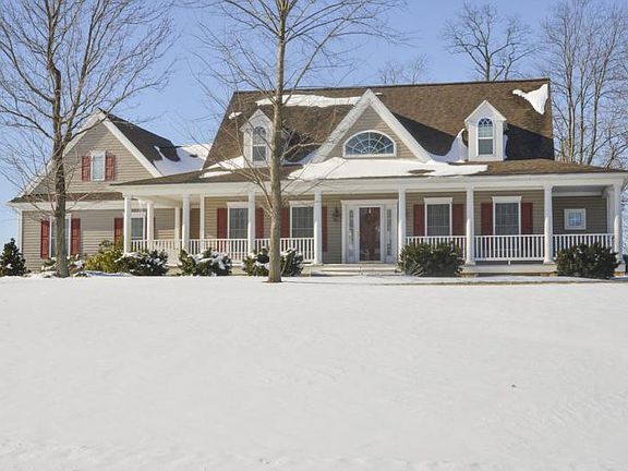 Spectacular, light-filled 8 year old cape in an exquisite country setting. This home has it all: open floor plan, 1st floor master suite w/WIC, double vanities, soaking tub & shower, 2 story windows, vaulted ceiling, hwd floors, beautiful kitchen w/WI pantry, island & upgraded appliances, FR FP, sunroom, loft, lower deck, 2 upper balconies, wonderful views & fabulous wrap around porch! Must see!