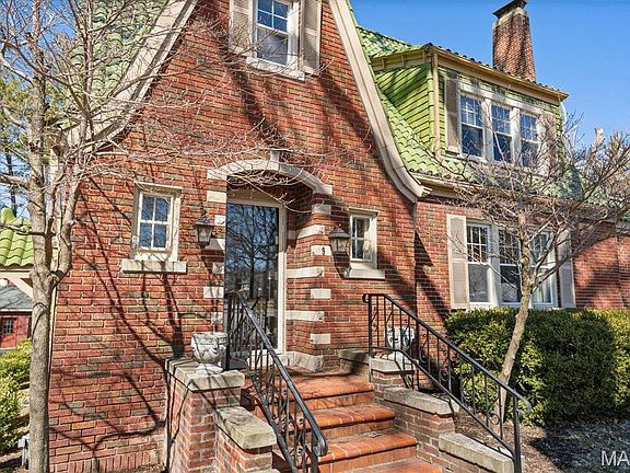 *OPEN HOUSE CANCELED*This Tudor home showcases architectural beauty at every turn. The gabled front-facing design & tile roof add to its distinguished curb appeal. Inside, hardwood floors and 7" baseboards flow throughout. The main floor features a formal living room with a fireplace, a formal dining room with a stunning chandelier, a cozy family room, a renovated kitchen with granite counters, a breakfast area, and a MAIN FL primary ensuite. Upstairs offers two large bedrooms, a bonus area (non-conforming 4th BR), heated floors in the full bath, and cedar closets. The renovated basement includes another FULL bath. Enjoy outdoor living on the composite deck and paver patio. The detached garage has been fully rebuilt with new doors and jack shafts. You'll need to see this home in person to appreciate the owners' 24 years of meticulous care & attention to detail. Ask your agent for the list of improvements. Location is prime-only 11 miles to downtown STL!