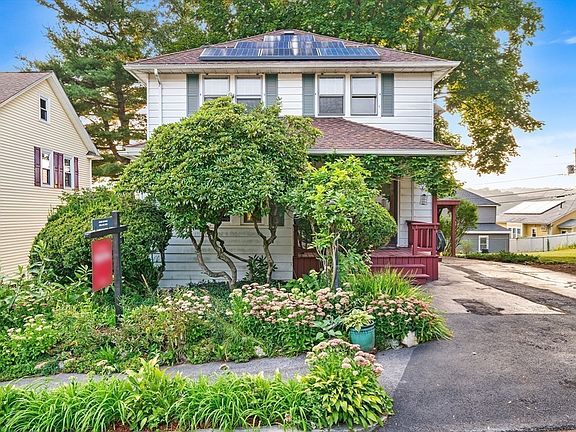 Charming three-bed, two bath home in a convenient location near schools and shopping. The ample backyard deck with a majestic maple tree and view of Indian Lake is ideal for entertaining. Hardwood floors, cozy sunroom and built-ins create a warm and inviting ambience. Enjoy the environmentally friendly perennial gardens, leased solar panels, 220-volt EV outlet, new hot water heat pump and smart thermostat. Other cost-saving and easy-maintenance features include aluminum siding, replacement windows and gutter guards. The house also includes front and side porches, a Juliette balcony and a carport attached to the rear deck. Recent water and gas line upgrades on the street. This home combines comfort, convenience & sustainability in a desirable neighborhood.