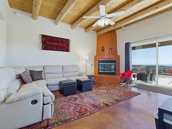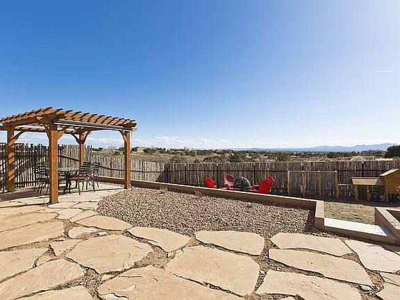 With gorgeous panoramic views of the Sandia and Ortiz mountains, this 1400 sq. ft. 3 bed/2.5 bath home has been beautifully updated with stained concrete flooring, an updated kitchen with quartz counter tops and new appliances, updated bathrooms, new stucco and a recently upgraded roof. Mini-splits just installed by Sellers for cooling and supplemental heating. Sited on a large 2 acre lot, the yard features a wonderful courtyard with a new flagstone patio and a lovely pergola for shade. There is a separate dog run outside of the courtyard and an attached 2 car garage. Close to shopping, the Eldorado Community School and with easy access to I-25, this adorable, move-in ready home is not to be missed.