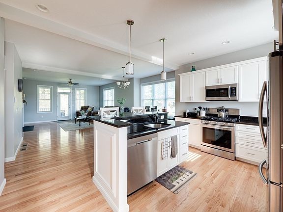 Picture perfect townhouse condo with covered porch/deck overlooking private yard. Granite & stainless kitchen, first floor master suite with full bath and walk-in closet, half bath on first floor has laundry area so you can live on first floor completely without going upstairs. Two very large bedrooms with a full bath and tons of giant closets on the second level. This is a meticulous, well maintained unit with gas fireplace, central air and one car attached garage. Easy luxurious living.