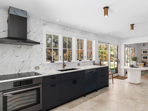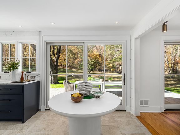 Truly a rare opportunity to acquire one of the most beautiful settings on the Mianus River. Located on the Greenwich/Stamford border, this modern contemporary colonial, completely renovated in 2019, is a sophisticated elegant retreat for the 2020's. Abundant natural light, glass wrapped living spaces allow the vistas to take center stage. Beautiful Carolina Pine floors, gorgeous new kitchen with marble counter tops & Bosche appliances, living room w/ FP & den/family room boasts french doors that open to an expansive blue stone terrace facing the river. Four sun drenched bedrooms & new bright bathrooms complete the second floor, detached 2 car garage with office. Close to new GCDS campus, Greenwich Academy, Brunswick,Sacred Heart,Children's School, Mead School & KLHT
