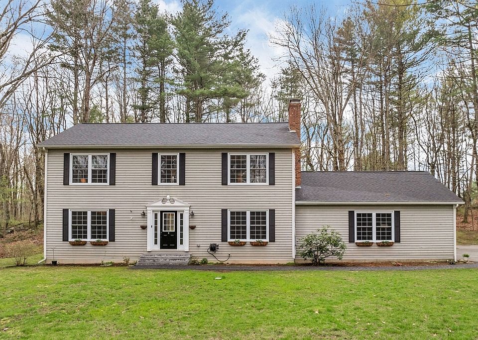 Set atop Perkins Hill, one of the highest point in Exeter, beautiful 4 bedroom, 2.5 bath Colonial offers privacy and updates on a 2-acre lot. New custom walkway welcomes you to the foyer and living room with a cozy wood-burning fireplace. Open-concept kitchen and family room, with a slider to a new oversized deck. Updated kitchen with new granite countertops, energy-efficient induction oven, refrigerator, dishwasher, hood, microwave, and pantry. Separate dining room, 1/2 bath with laundry area, and direct access to the insulated 2-car garage with storage. Upstairs, spacious primary suite features a bath with tub and shower, tile floors, double vanity, and double closets plus 3 additional bedrooms and a full bath. Drop-down attic and full basement with workbench and 3x20 amp service offers great potential. Solid modular construction by Marcoux Homes. Convenient to downtown Exeter, Amtrak, beaches, trails, and and commuter routes. Pre-inspected.