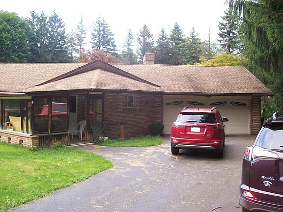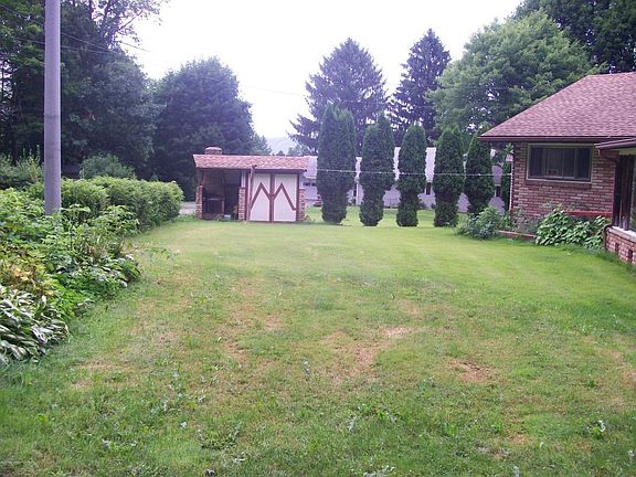 SOLID BRICK RANCH HOME IN QUIET VALLEY AREA NEAR INTERSTATE with a nice enclosed patio looking out to the rear yard with brick BBQ station, hardwood floors, knotty pine throughout 3 bedrooms, gas fireplace living room, large eat in kitchen, large main bath, partially finished basement with bar and electric fireplace, cedar closets, whole house fan covered front porch overlooking Route 93.