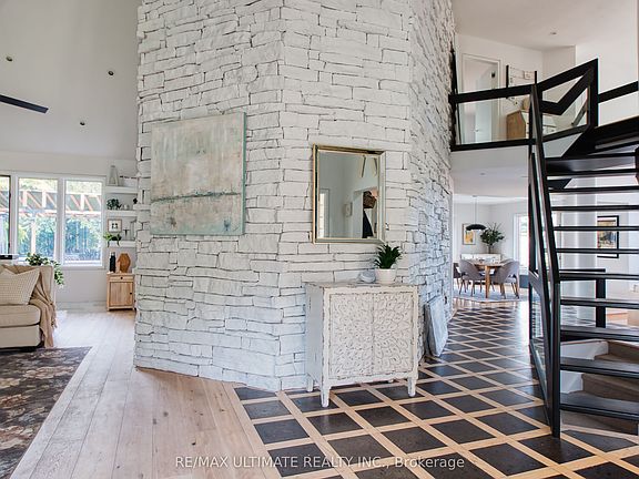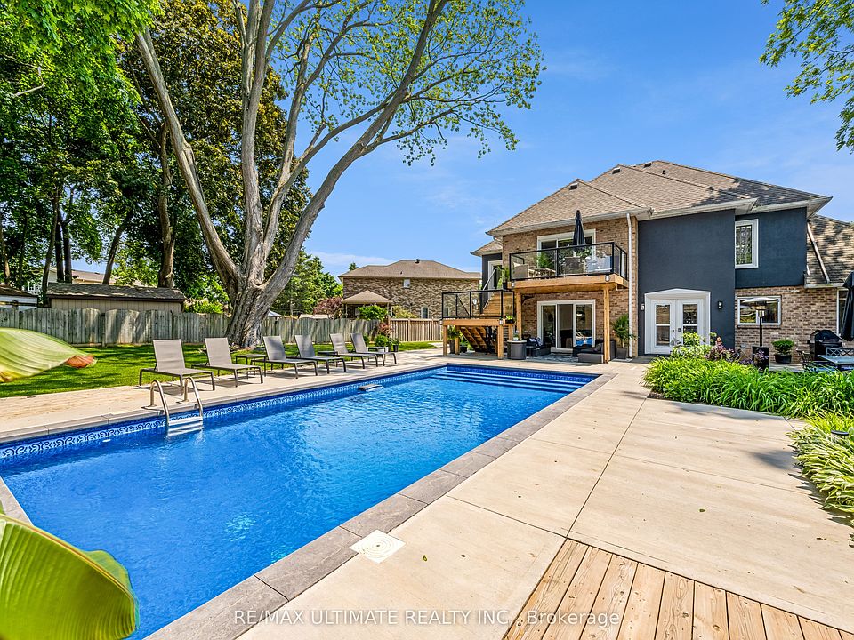 Architectural Elegance Meets Everyday Luxury in Prestigious Fonthill. When you walk through the door, your eyes are immediately drawn to a stunning floor-to-ceiling stone feature wall and a striking open-riser staircase of glass and wood, an architectural statement that sets the tone for the entire home. Beyond this, soaring cathedral ceilings and dramatic floor-to-ceiling windows fill the great room with natural light, creating a warm yet awe-inspiring welcome. Set on an expansive pie-shaped lot in one of Fonthill's most sought-after neighbourhoods, this 3,000 sq. ft. custom-built contemporary home blends modern design with everyday functionality. The open layout flows effortlessly into a formal dining area with vaulted ceilings and a chefs kitchen boasting abundant counter and cabinet space, a large breakfast island, and views into the spacious family room. Upstairs, the primary suite is a true retreat with a spa-like 5-piece ensuite, walk-in closet, and private balcony, complete with its own staircase to the pool. Two additional bedrooms offer generous closets and unique accent windows that add character and light. The finished basement expands your living space with a rec room, office, extra bedroom, and ample storage. Step outside to a backyard paradise designed for unforgettable moments: a saltwater pool, bubbling hot tub, fully equipped outdoor kitchen and bar, a gazebo, new deck, and beautifully landscaped grounds with concrete walkways and elegant planters. Whether you're drawn to Fonthill for its charm, community spirit, or proximity to Niagara's finest amenities, this home delivers the perfect balance of comfort, elegance, and lifestyle in a location you'll be proud to call your own.