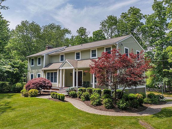 Wow describes this quintessential New England feeling for this south-facing Colonial with wonderful presence. Nestled on a quiet, friendly cul-de-sac in highly sought after Pleasantview Estates. Imagine picturesque open-living in 2 level acres boasting 3 floors, 5 BR/3.5 baths, office, 2 custom millwork stone fireplaces, professional landscaping, mature lawns, trees, stone walls, and more. Meticulously maintained counting investments over $550k with Hardi-plank siding, hard-wood floors, Anderson windows, surround sounds, and new water filtration systems. The fabulous gourmet chef's kitchen leads to a powder room and separate laundry. The upper level offers large bedrooms with storage including the master with walk-in closet and private en-suite with skylight. The versatile flow makes this home a perfect space for entertaining friends & family in sun-filled living rooms. The all-season sunroom with cathedral ceiling leads to a 2-tier Trex deck overlooking a large backyard. The lower level features a mudroom and fully finished walk-in basement that is a playroom and gym or for the au-pair and provides access to the oversized 2-car garage and the extra garage with plenty of storage. With deeded rights to Pleasantview Recreational Association offering tennis, pool, clubhouse, playground, and more. Perfect location with an easy commute to I-684/84 and train to NYC. Just minutes from schools, shopping malls, restaurants, grocery stores & golf course. Welcome to Wow!