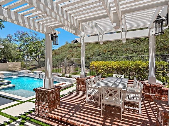Rich in Classic Traditional style, this stunning Amberly Lane home on a quiet cul-de-sac street in LaderaRanch showcases a brand-new remodel that encompasses 100% of the residence. Today's most soughtafter amenities, finishes and fixtures are featured throughout the two-story floorplan, which measuresapproximately 3,294 square feet and reveals four bedrooms, three baths, loft area or potential 5th bedroom, formal living and dining rooms,and a family room with a fireplace, raised hearth, a built-in entertainment center and surround sound. Interiordesign masterfully blends contemporary flair with the timelessly elegant beauty of extensive custommillwork, oversized crown molding, numerous custom built-ins, new designer paint, plantation shutters, chiclighting, and hardwood flooring throughout both levels. All baths have beenreimagined and boast exquisite Carrara marble, which is also featured in a brand-new chef's kitchen withwhite Shaker cabinetry that extends to the ceiling, custom mill work inclusive of the built-in refrigerator, an island, breakfast bar, nook, pantry, custom mudroom with built-in desk, a Miele steamconvection oven, and a top-of-the-line La Cornue range. One bedroom is located downstairs, and the upperfloor hosts a loft and a glamorous primary suite with custom cabinetry, a spacious walk-in closet with custombuilt-ins, separate vanities and a stand-alone tub. Grounds back to a private landscaped hill and extendnearly 6,402 square feet. They are distinguished by a brand-new pool and spa, a covered brick patio, anopen-air fire pit, gorgeous front-yard landscaping, and a long, gated driveway with porte cochere that isideal as an outdoor play area. A new owned solar system powers the residence, a three-car garage isfeatured, and all piping has been replaced. Close to the Oak Knoll Village Clubhouse, the home isconvenient to excellent schools, trails, and large shopping centers with popular stores and restaurants.