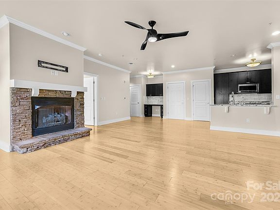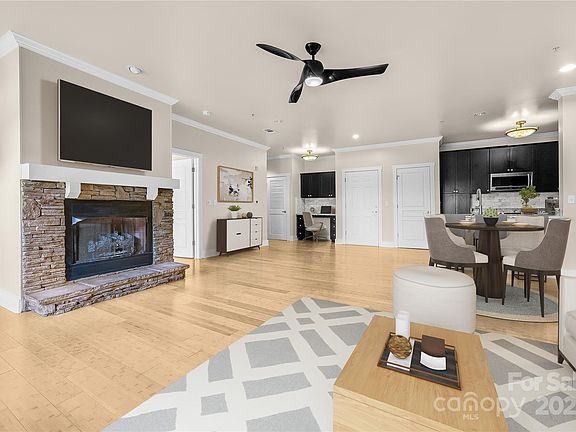 Get ready to fall in love with this fabulous open floor plan! Enjoy views of the courtyard, pool, and mountains, all while enjoying the privacy of your charming patio. Inside, the elevated kitchen and bathrooms offer contemporary chic vibes. Stunning granite, tilework, and cabinets make this home a step above the rest.  The living room is lovely with its cozy stone fireplace and massive windows that let the afternoon sunshine pour in. As an extra bonus there is a dedicated work space and desk. The community pool, gym, and dog park offer something for everybody. Enjoy close proximity to downtown Asheville without the downtown price tag.