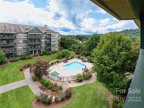 Secure, Low Maintenance, Luxury Living in the Heart of Asheville!!! ONLY 3 minutes from Downtown Asheville, shopping, grocery, and restaurants!!! Accessed by large elevators, this bright 2 BR, 2 BA split-bedroom condo has a stacked-stone gas log fireplace & spacious walk-in-closets!!! You'll be WOWED by the grand main lobby with 2-story vaulted ceilings & massive floor to ceiling fireplace! RELAX this summer in the private courtyard with outdoor POOL OASIS w/spa/hot tub area... Get in shape in the huge indoor FITNESS CENTER or take your dog to the conveniently located DOG PARK. Soak up the views from your private highly sought after covered deck overlooking the courtyard and pool area.