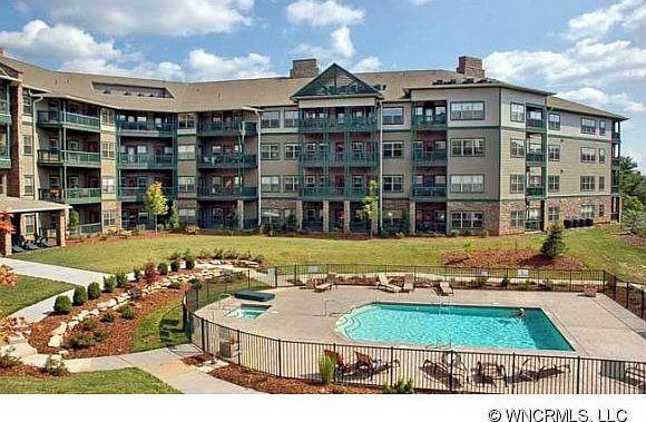 Desirable location! Walking distance to downtown Asheville, shopping, dining, entertainment, and public transportation. Spacious Luxury unit for sale in a secured entry condominium complex of 106 units with climate controlled hallways and common areas, free WiFi, Private Dog Park, Swimming Pool, Jacuzzi, BBQ Grill, Two elevators access to all four floors, One elevator to access fitness room and extra storage in ground floor. Two car parking space per unit with plenty of guest parking. This is a 3rd floor unit that features two master bedrooms with their own walk in closets and full bathrooms, stone gas fireplace, kitchen with granite counter tops and stainless steels appliances, washer/dryer closet, balcony, tiled bathrooms, entry hardwood floor, built in desk/office space, and freshly painted walls. Move in ready! HOA Fee $292 includes water, gas, garbage, and building maintenance, just pay for electric!