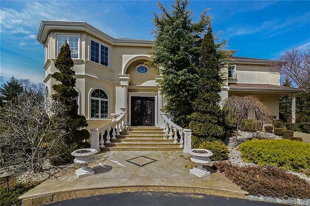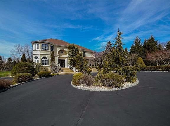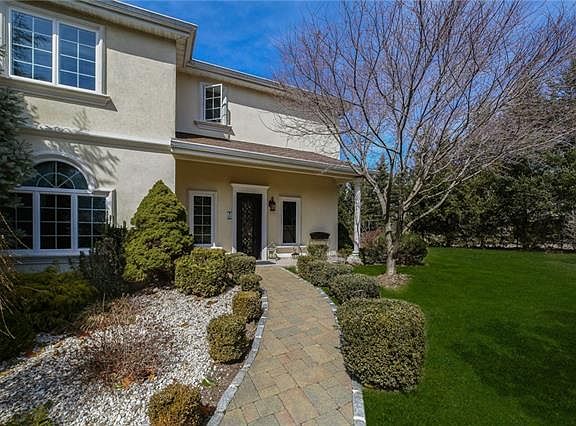 This stately 4/5Br, 3.5 bath Colonial sits on an acre of land with manicured gardens.This home embodies fine architectural details and exquisite craftsmanship.Your welcomed by Roth Iron Filigreed Double Doors, a Grand 2-Story entry with an exquisite winding mahogany staircase,custom inlay marble and hardwood floors and a half bath.The Great Room/Frpl, Formal LVRM and DRM are saturated with natural sunlight and the office/Br is perfect for guests. Beyond the Formal DRM is the heart of this home, a modern kitchen with SS high-end appliances, a center island and the dinette area accented with vaulted ceilings, beautiful arched windows and french doors leading to the rear yard.Upstairs you'll find a Master Suite /MBTH & WIC, 2Br's, Bath and a 3rd Br w/a Private Bath.The lower level has a summer kitchen, wine cellar and a family room leading to a 3 car garage.The outdoor kitchen has a pizza oven,a fire pit and fruit orchards are the pleasures you'll find with this homes outdoor living.