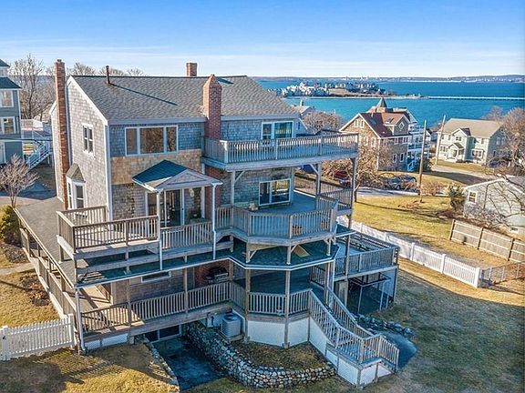 Spectacular views from every floor of this Allerton Hill colonial! Step inside the grand entryway with original features adding to the charm of this seaside home. Generous size rooms continue throughout, french doors lead to the open living & dining room with gas fireplace. An updated kitchen with breakfast bar, separate eating area & bathroom with shower round out the first floor. Every level has an expansive deck taking full advantage of the fabulous views and offering endless entertaining space for guests. Lots of sleeping options with FIVE bedrooms on next two levels, two additional full baths, and laundry. Hardwood floors throughout most of home with newer carpet on third level. Large fenced in yard and two separate driveways allow for plenty of off-street parking. Full walkout basement with ample storage. Access to XYZ beach. Ideal location for commuting to Boston & Logan with the commuter boat.***1-YEAR HOME WARRANTY INCLUDED WITH SALE***