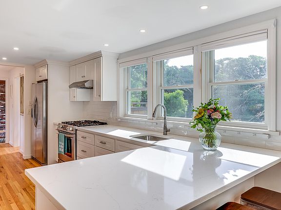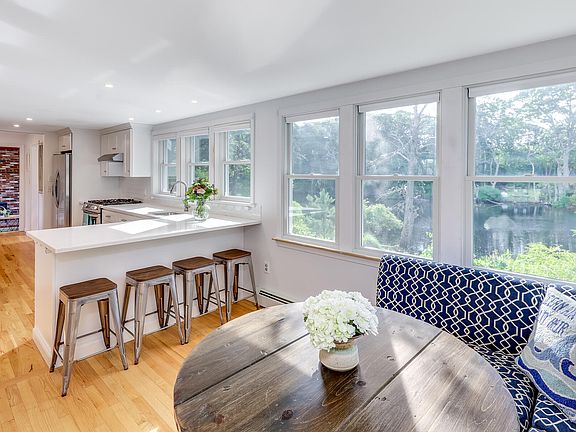 Step into your ideal home, gracefully situated next to a nature-filled kettle pond, encompassing over an acre of tranquility. This exquisitely remodeled Cape-style residence boasts four bedrooms and two and a half bathrooms, offering serenity a stone's throw from the heart of downtown Orleans. Meticulously refurbished, it showcases a brand-new kitchen, a convenient pantry/mudroom, pristine bathrooms, a modern heating system, and a host of other upgrades. With its main-floor living layout, and additional bedrooms upstairs, there's ample space for both your own relaxation and hosting gatherings with friends and family. Delight in the professionally landscaped and meticulously irrigated surroundings, providing an ideal setting for outdoor pursuits and social events. Notably, this property is in high demand as a rental, commanding $4,000 per week during the summer season.