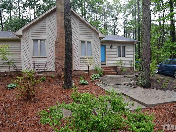 Cozy ranch home on a quiet cul-de-sac with fenced in yard in southwest Durham. This home has been well maintained & updated. Extensive yet self maintaining landscaping creates nice curb appeal. Custom cement pavers lead to the entrance of home. Private wooded lot, patio & deck. Granite counters, premiere vinyl flooring, refinished bath tubs & toilets. Siding has been recently painted, heat pump is 5 years old.