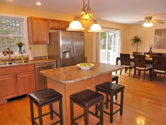 Meticulously cared for this lovely home is just waiting for its new owners. The fully applianced kitchen with breakfast island, gas stove, stainless steel dishwasher and fridge is open to the bright dining area, off which a slider leads to the spacious deck overlooking the back yard. The sunny living room just beckons you to curl up with a good book or settle in to watch TV. On the second floor, you find the sizeable master with en suite, 3/4 bath, and double closets.Two additional good size bedrooms, a full bath and a fourth room used as an in-home office or den complete the living space. Second floor laundry is a real plus and the Sellers are providing a Home Warranty for the Buyers. In your walk out basement with extraordinarily high ceilings, you can practice your golf swing all year round! All this, topped off with a 2 car attached garage is situated at the end of a cul-de-sac in a lovely neighborhood within walking distance to town and easy access to Seacoast and NH.
